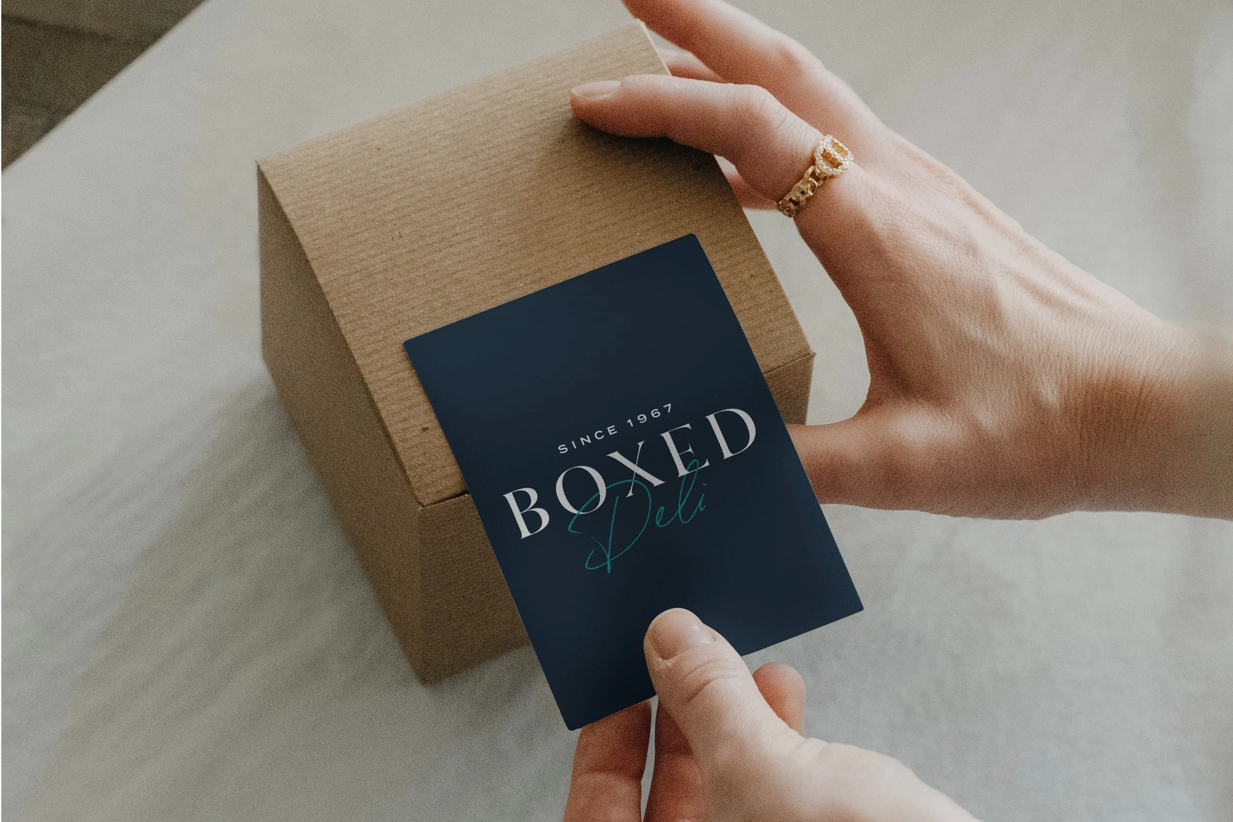 Sealed box labels, adding a brand identity to sustainable packaging. Packaging for Rowcliffe, a local business in Kent.